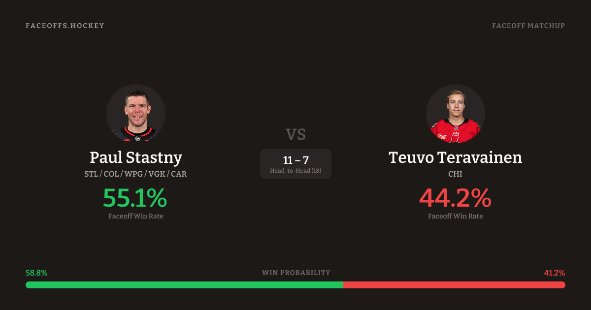Paul Stastny vs Teuvo Teravainen — Faceoff Head-to-Head
