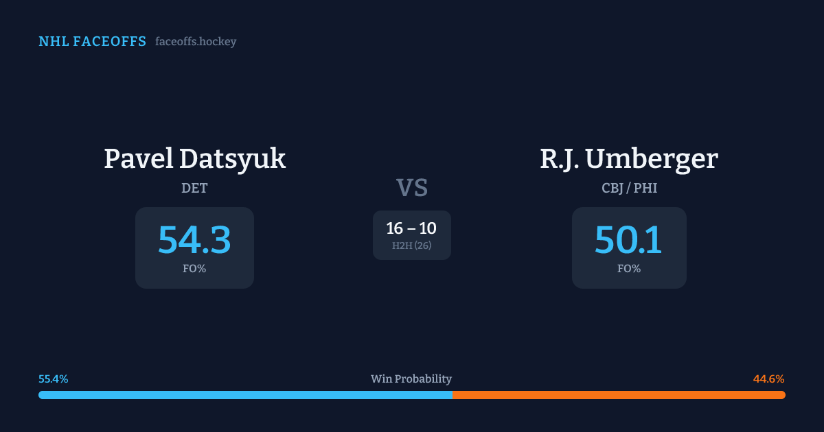 Pavel Datsyuk vs R.J. Umberger — Faceoff Head-to-Head