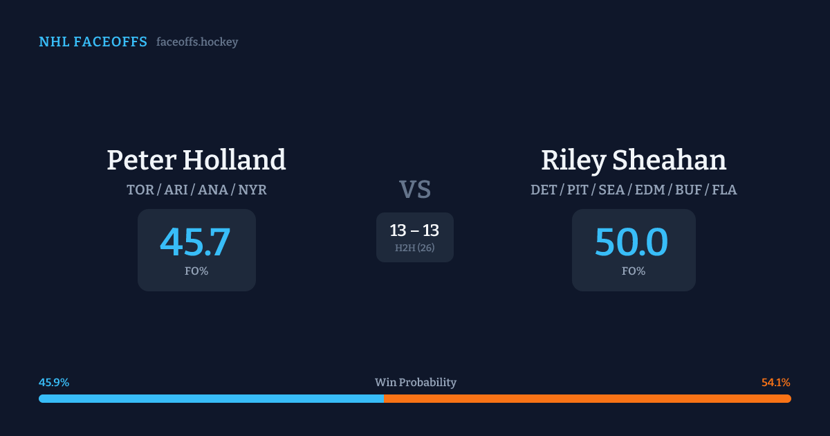 Peter Holland vs Riley Sheahan — Faceoff Head-to-Head