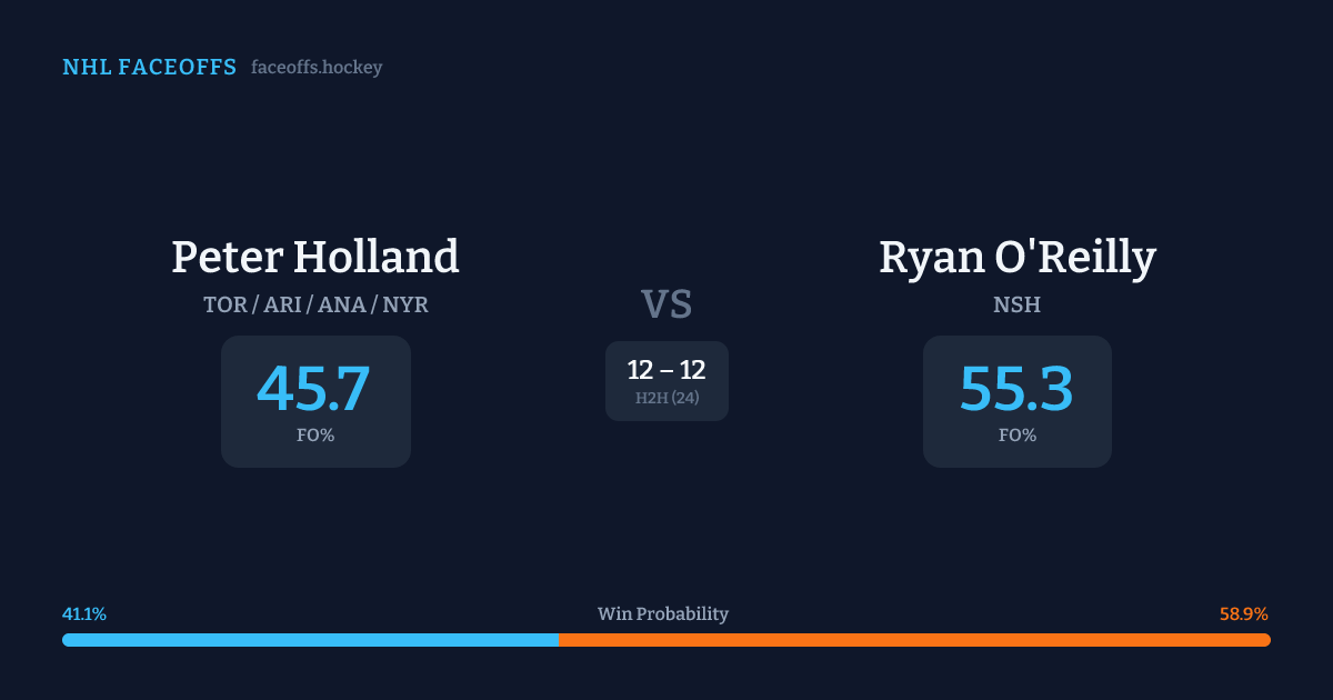 Ryan O'Reilly holds a +10.3% FO% edge overall. Look for Holland on offensive-zone draws (67% H2H, 9 meetings).