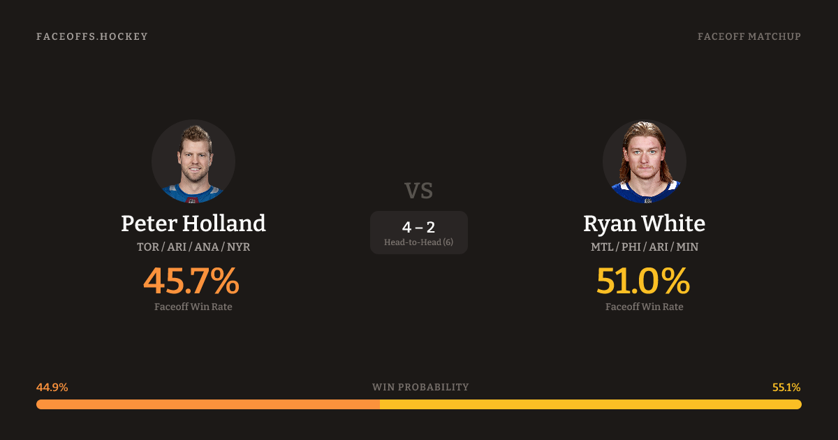 Peter Holland vs Ryan White — Faceoff Head-to-Head