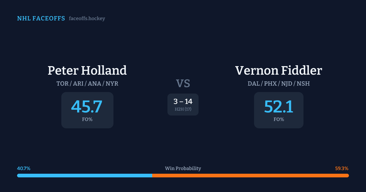 Peter Holland vs Vernon Fiddler — Faceoff Head-to-Head