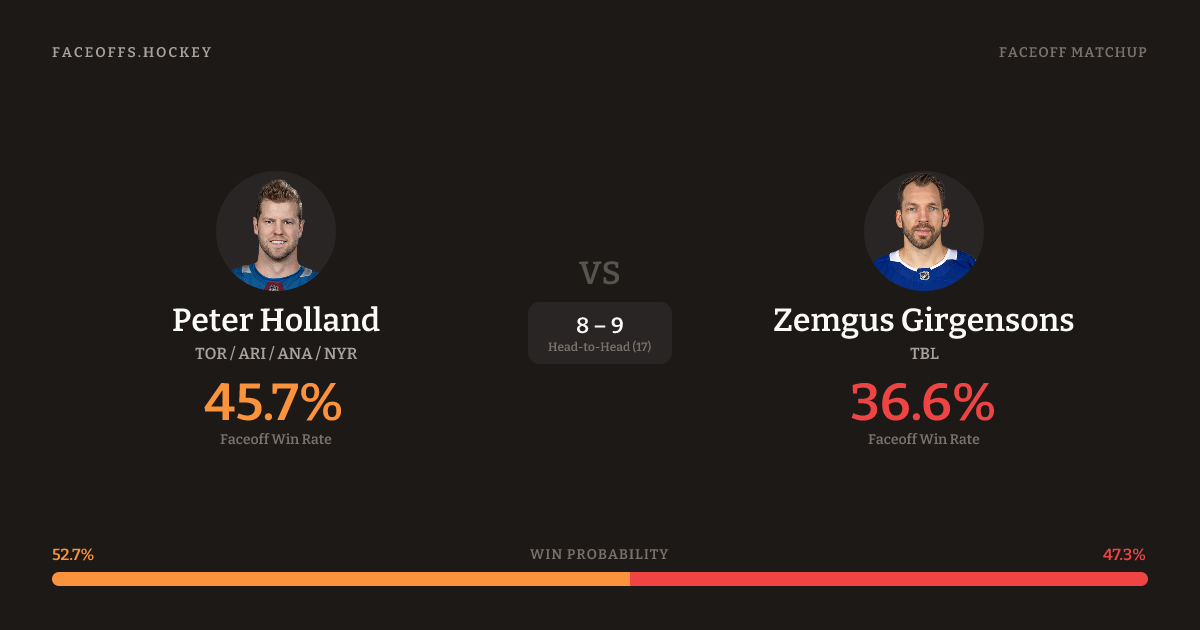 Peter Holland vs Zemgus Girgensons — Faceoff Head-to-Head