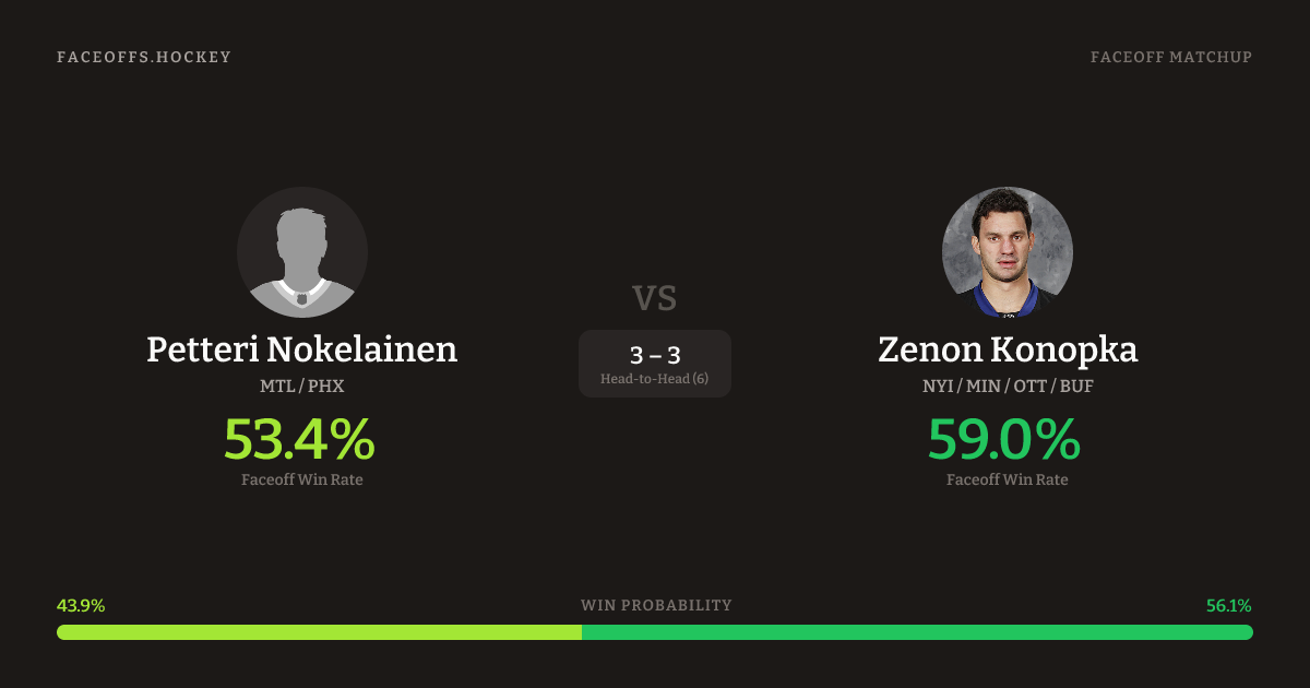 Petteri Nokelainen vs Zenon Konopka — Faceoff Head-to-Head