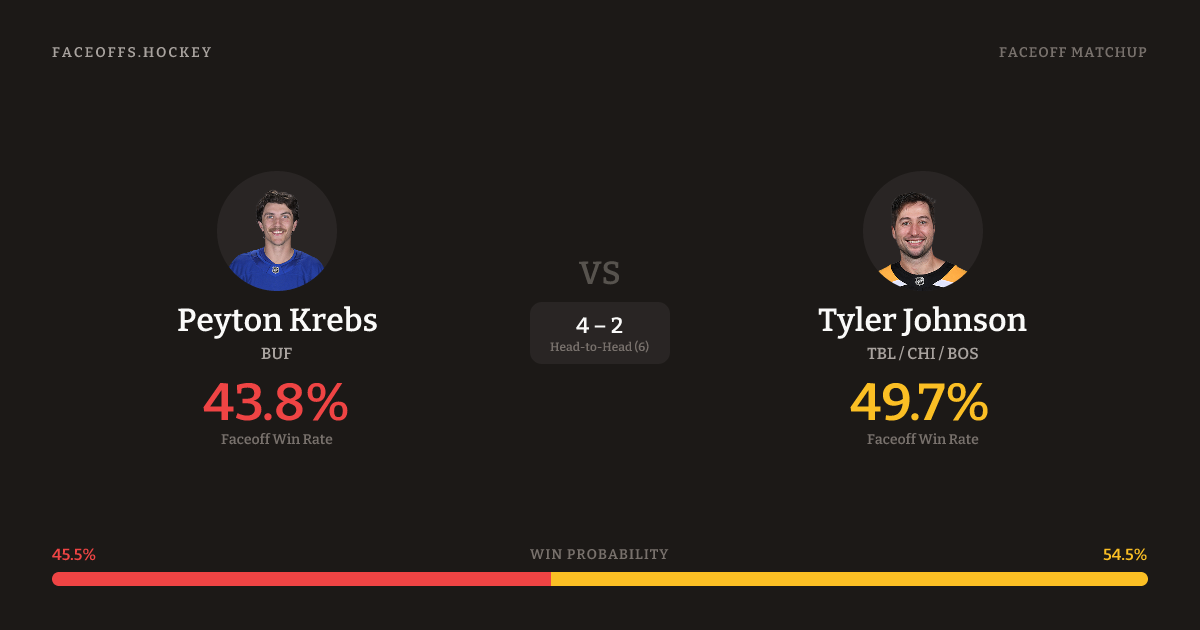 Peyton Krebs holds a +1.9% FO% edge overall.