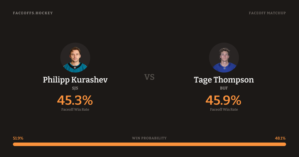 Philipp Kurashev holds a +3.1% FO% edge overall. Look for Kurashev on offensive-zone draws (75% H2H, 4 meetings).