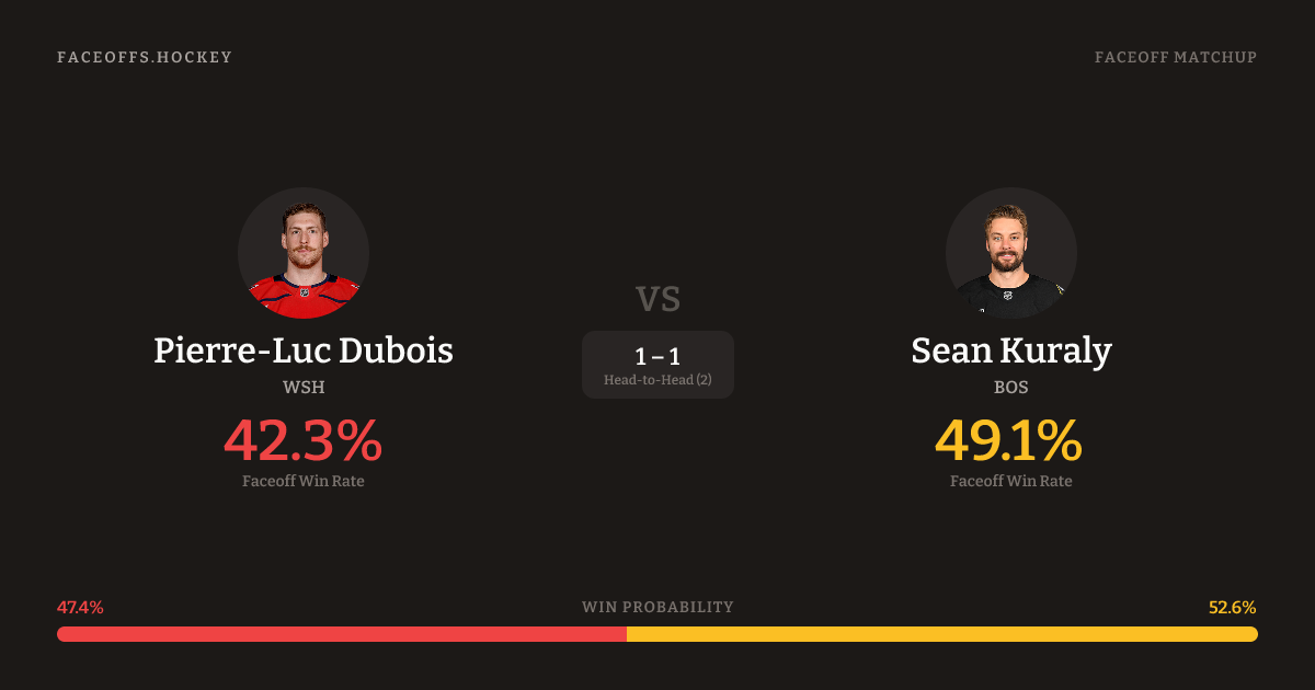 Pierre-Luc Dubois vs Sean Kuraly — Faceoff Head-to-Head