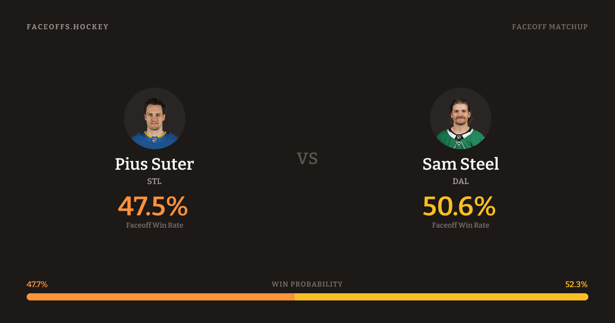 Pius Suter vs Sam Steel — Faceoff Head-to-Head
