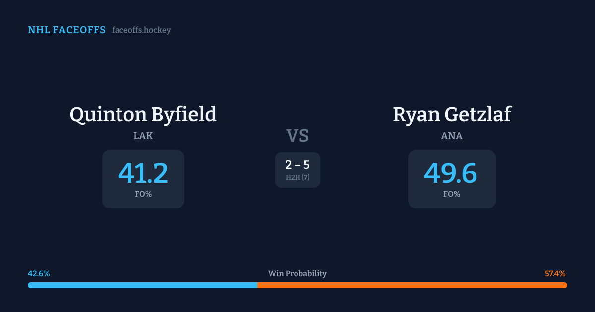 Quinton Byfield vs Ryan Getzlaf — Faceoff Head-to-Head