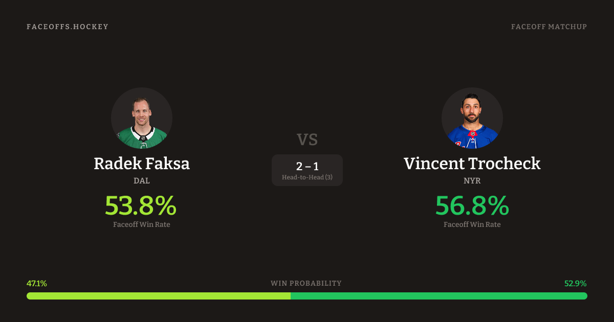Radek Faksa vs Vincent Trocheck — Faceoff Head-to-Head
