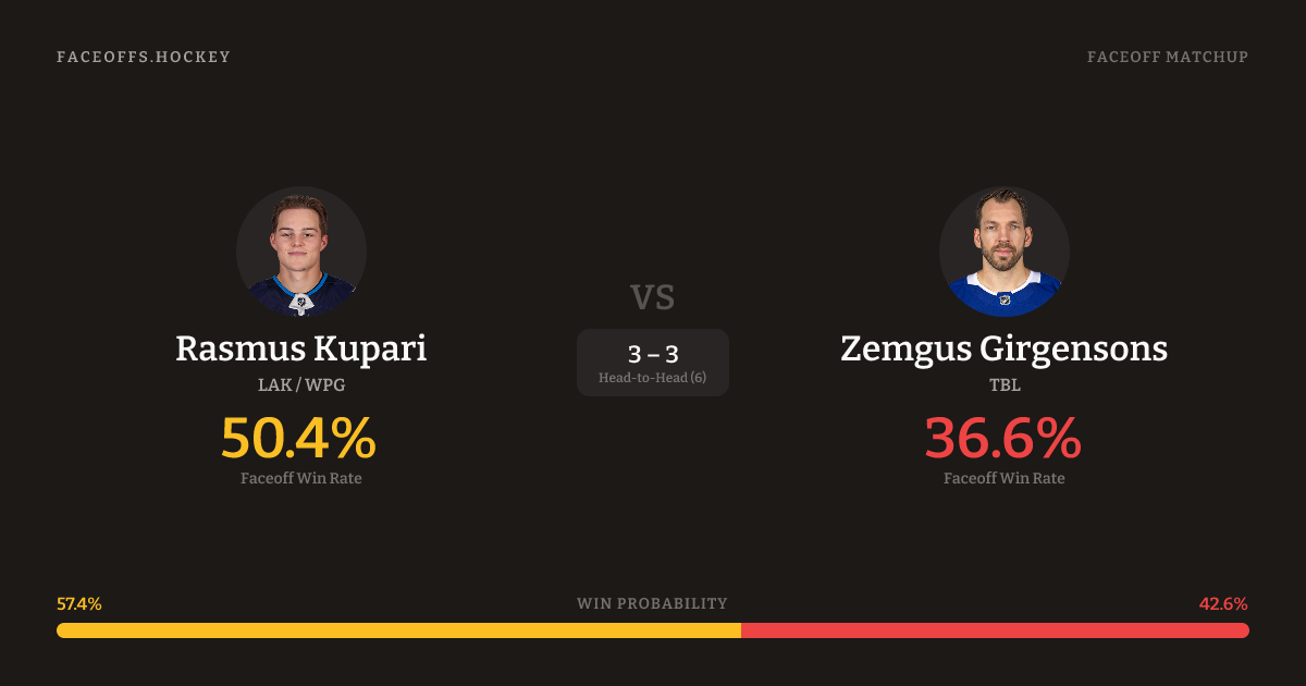 Rasmus Kupari vs Zemgus Girgensons — Faceoff Head-to-Head