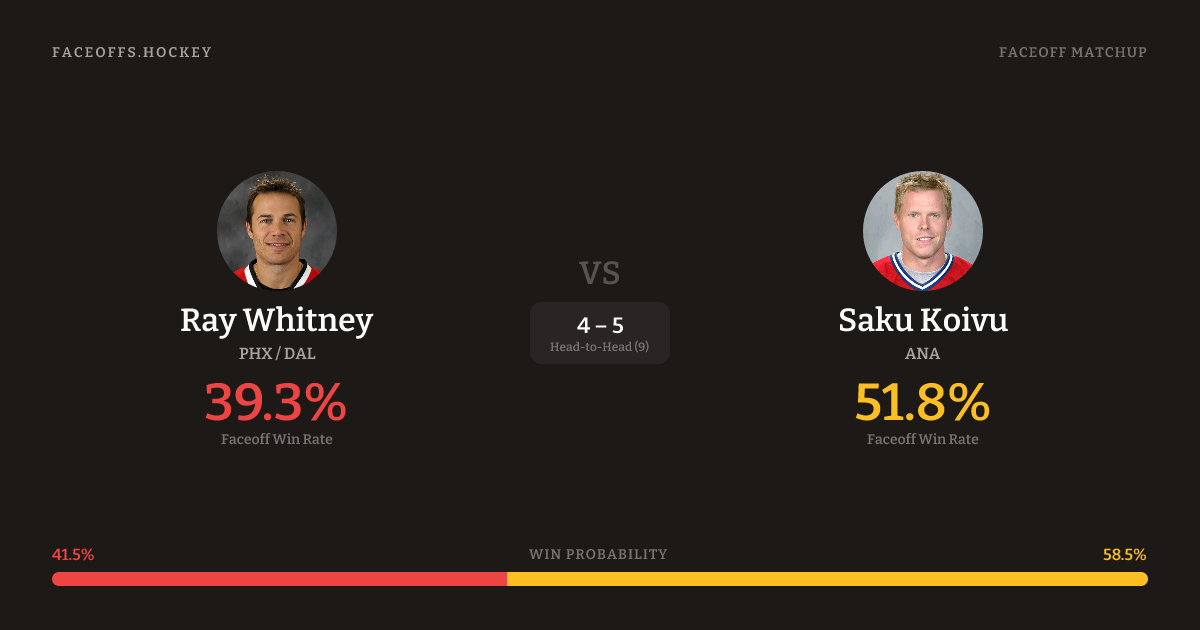 Ray Whitney vs Saku Koivu — Faceoff Head-to-Head