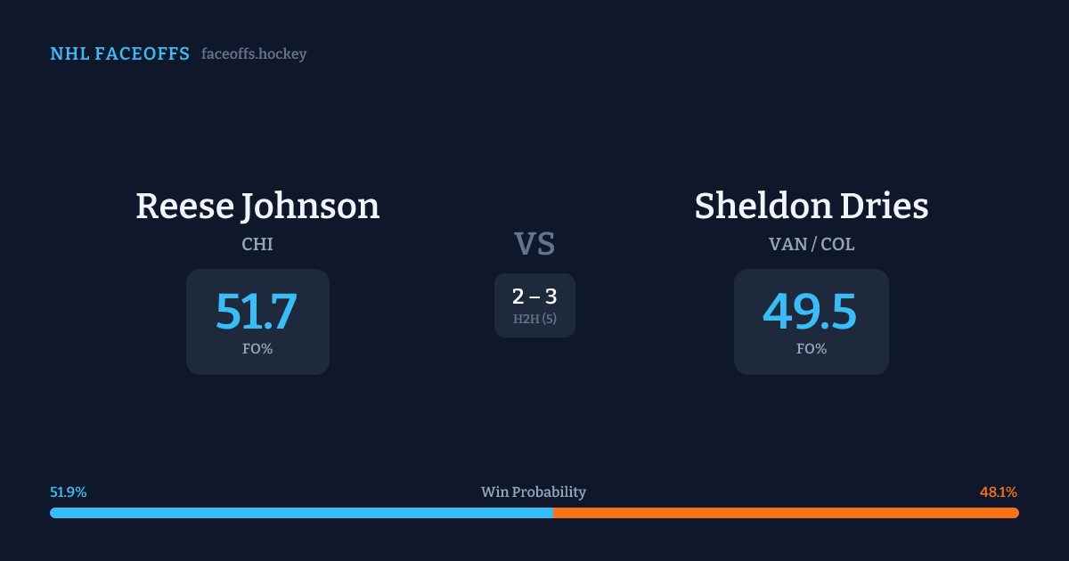 Reese Johnson vs Sheldon Dries — Faceoff Head-to-Head