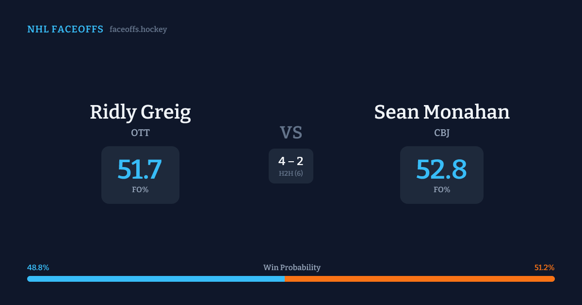 Ridly Greig vs Sean Monahan — Faceoff Head-to-Head