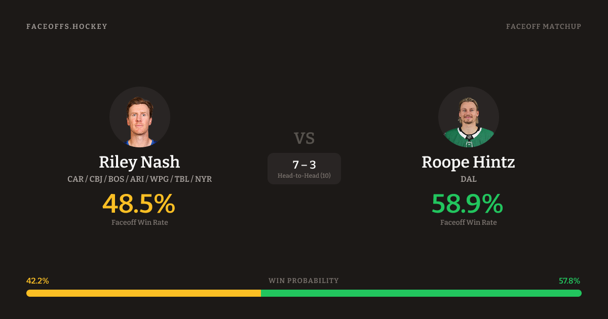 Riley Nash vs Roope Hintz — Faceoff Head-to-Head