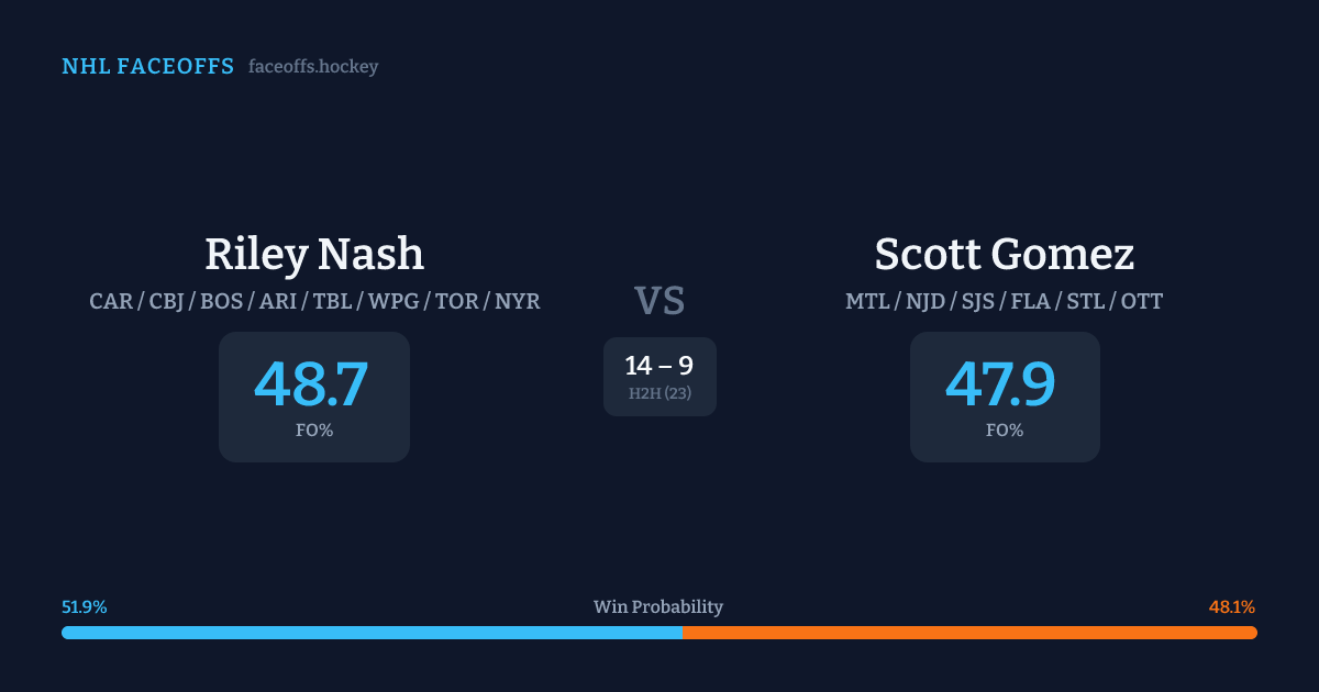 Riley Nash vs Scott Gomez — Faceoff Head-to-Head