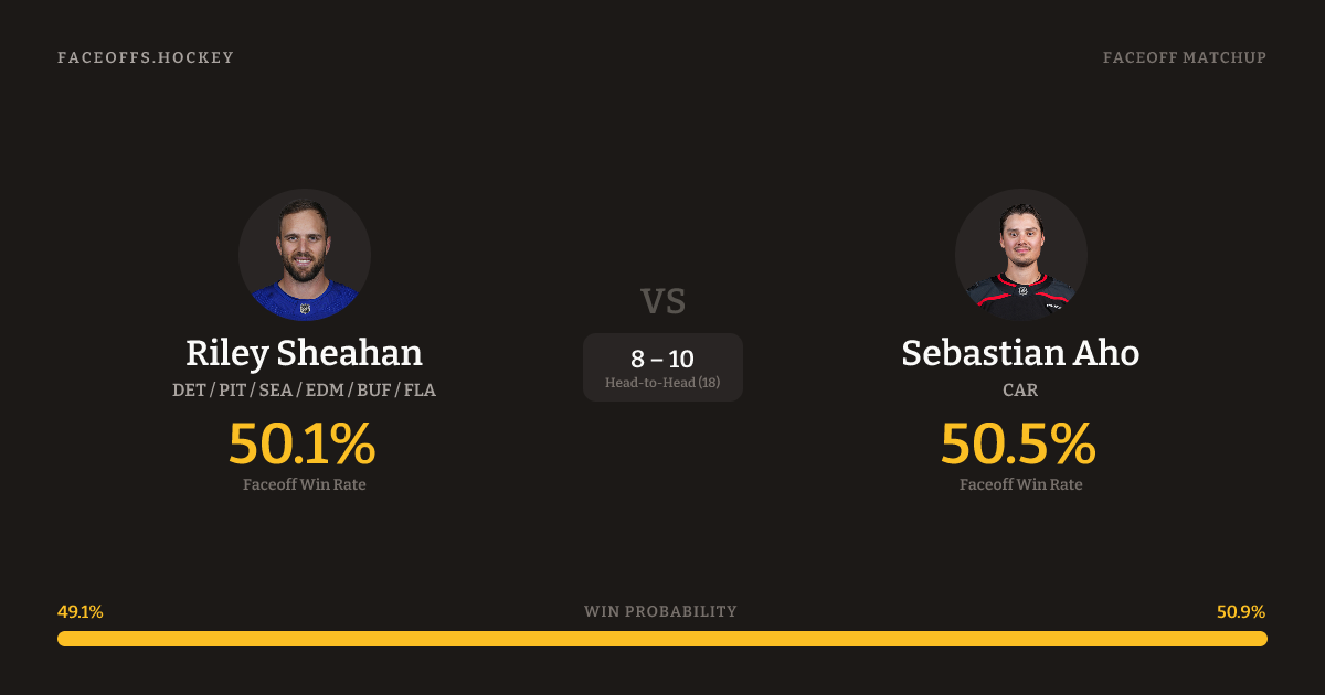 Riley Sheahan vs Sebastian Aho — Faceoff Head-to-Head