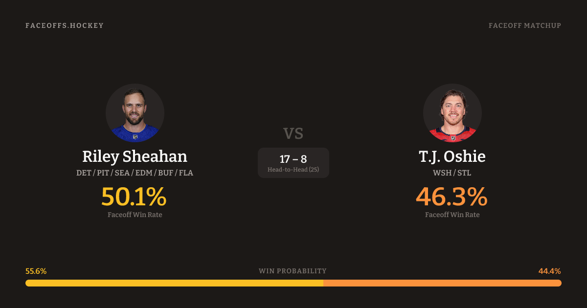 Riley Sheahan vs T.J. Oshie — Faceoff Head-to-Head