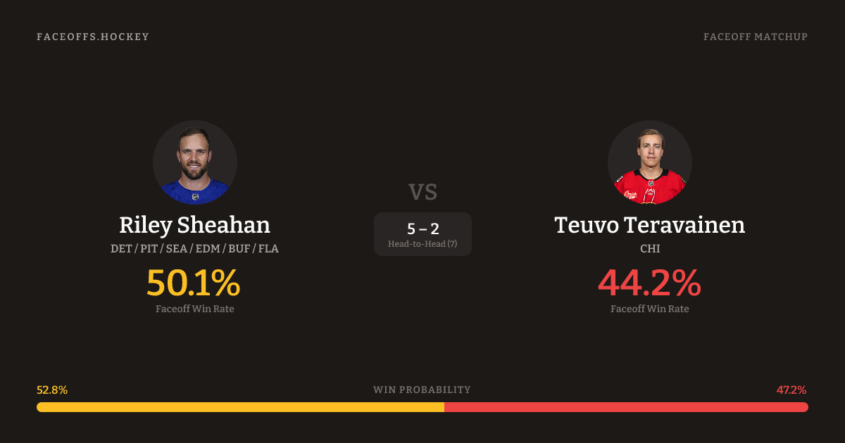 Riley Sheahan vs Teuvo Teravainen — Faceoff Head-to-Head