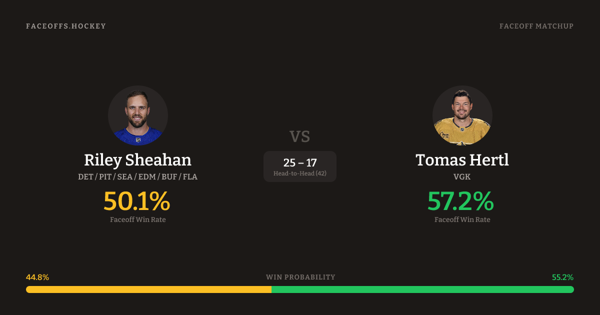 Riley Sheahan vs Tomas Hertl — Faceoff Head-to-Head