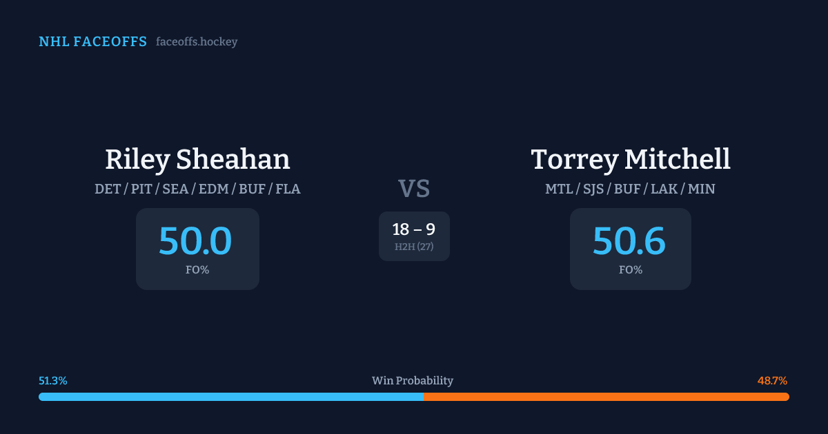 Riley Sheahan vs Torrey Mitchell — Faceoff Head-to-Head