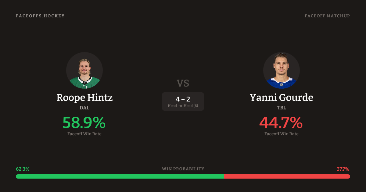 Roope Hintz vs Yanni Gourde — Faceoff Head-to-Head