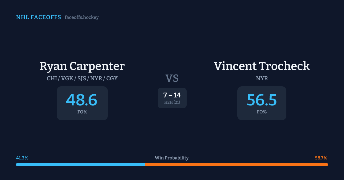 Ryan Carpenter vs Vincent Trocheck — Faceoff Head-to-Head