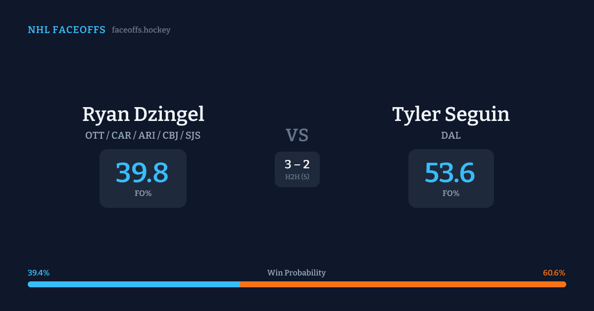 Ryan Dzingel vs Tyler Seguin — Faceoff Head-to-Head