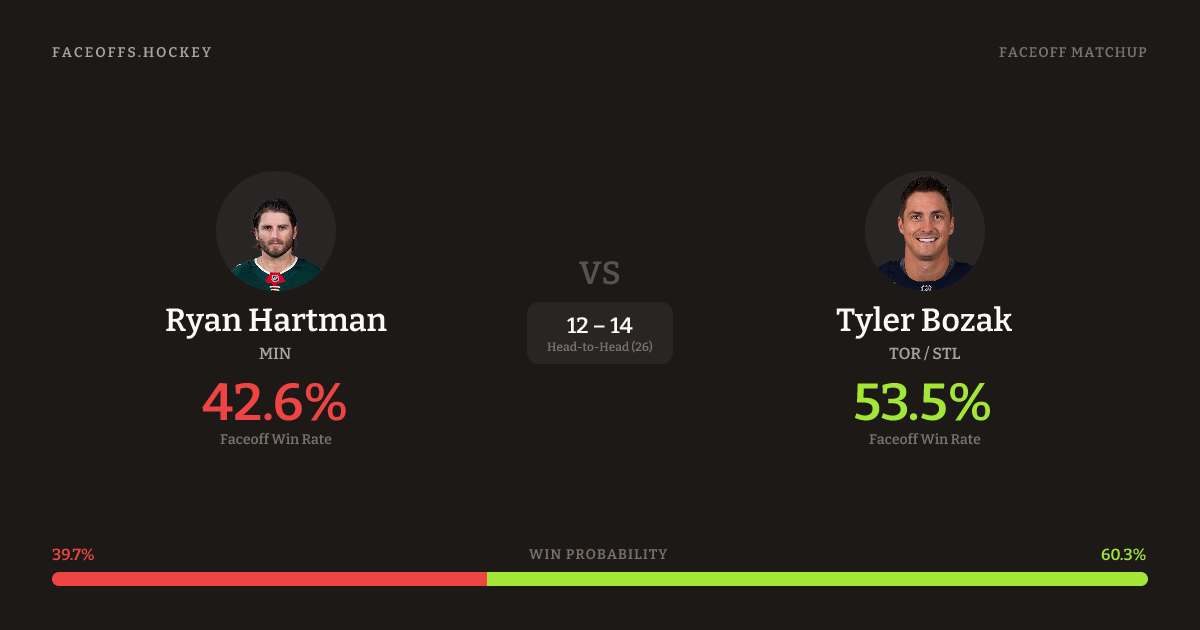 Ryan Hartman vs Tyler Bozak — Faceoff Head-to-Head