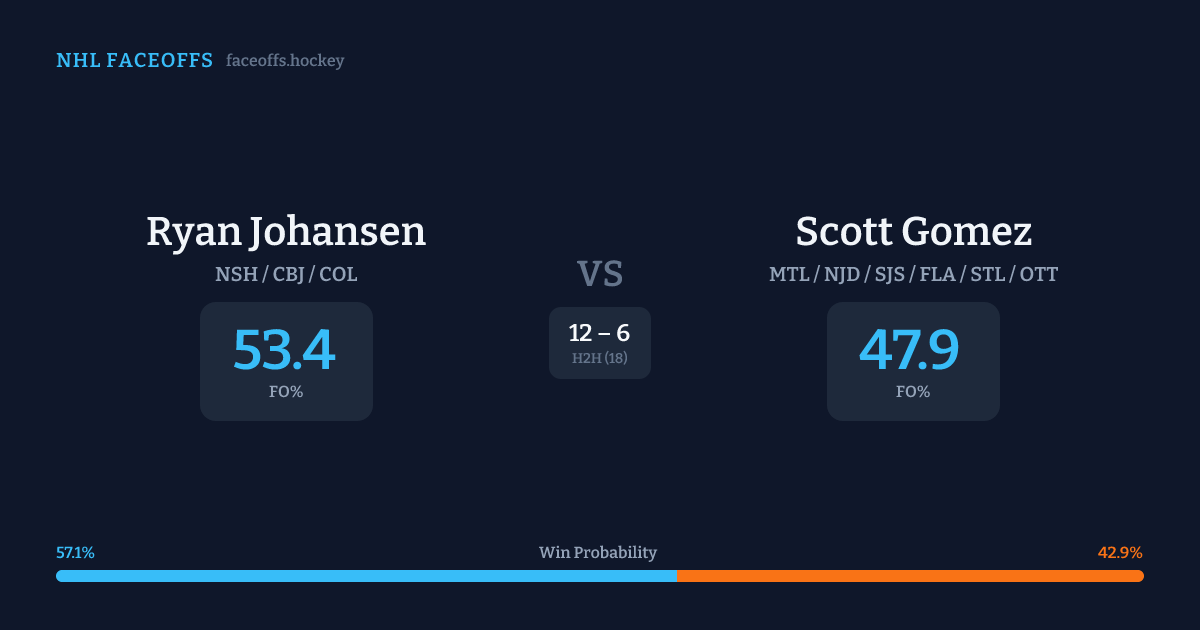 Ryan Johansen vs Scott Gomez — Faceoff Head-to-Head