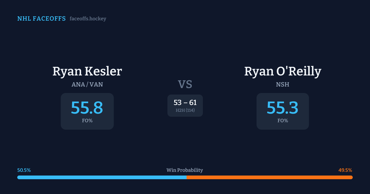 Ryan Kesler vs Ryan O'Reilly — Faceoff Head-to-Head