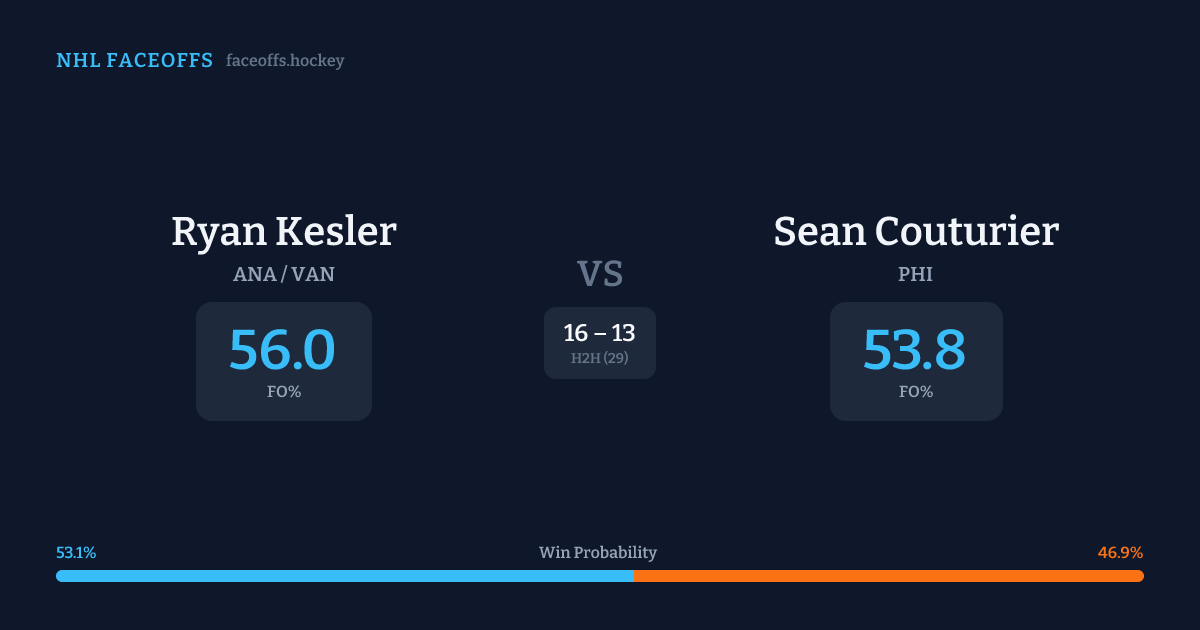 Ryan Kesler vs Sean Couturier — Faceoff Head-to-Head