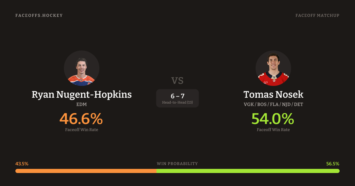 Ryan Nugent-Hopkins vs Tomas Nosek — Faceoff Head-to-Head