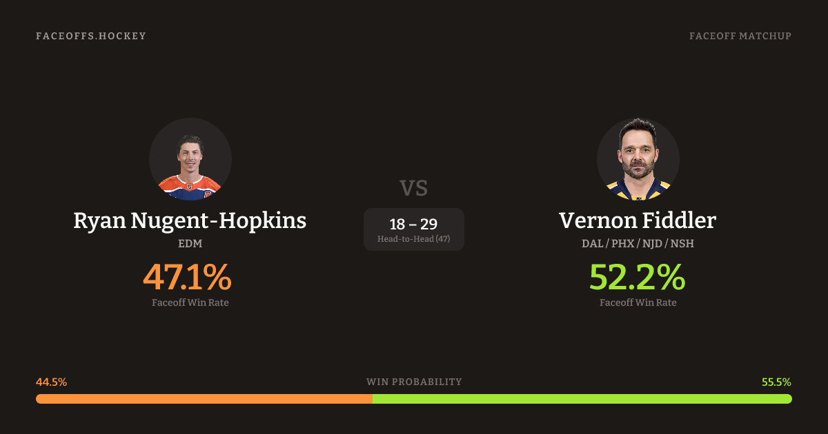 Ryan Nugent-Hopkins vs Vernon Fiddler — Faceoff Head-to-Head