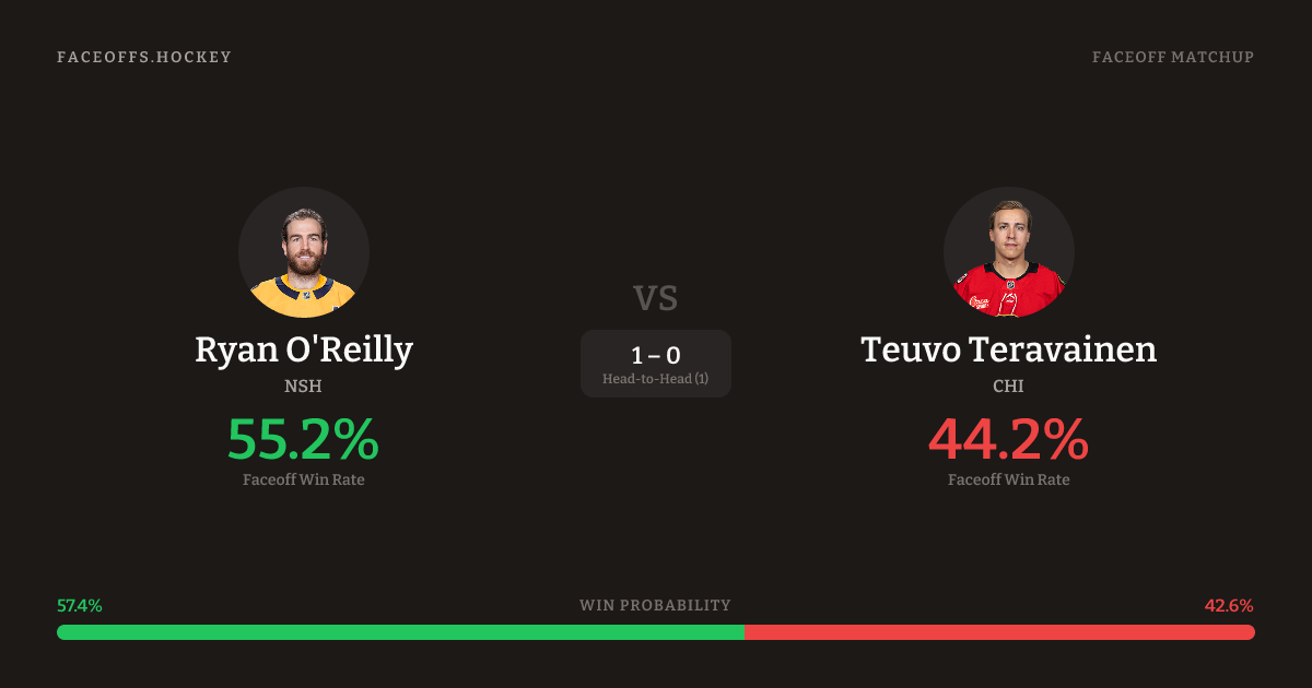 Ryan O'Reilly vs Teuvo Teravainen — Faceoff Head-to-Head