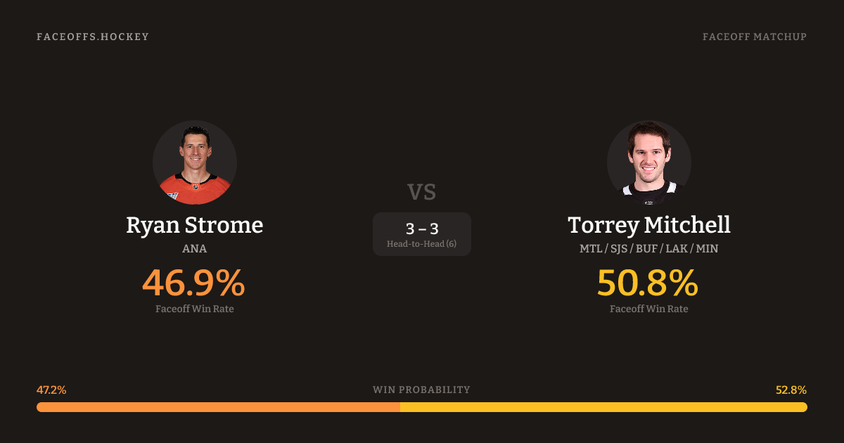 Ryan Strome vs Torrey Mitchell — Faceoff Head-to-Head