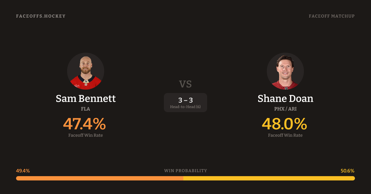 Sam Bennett vs Shane Doan — Faceoff Head-to-Head