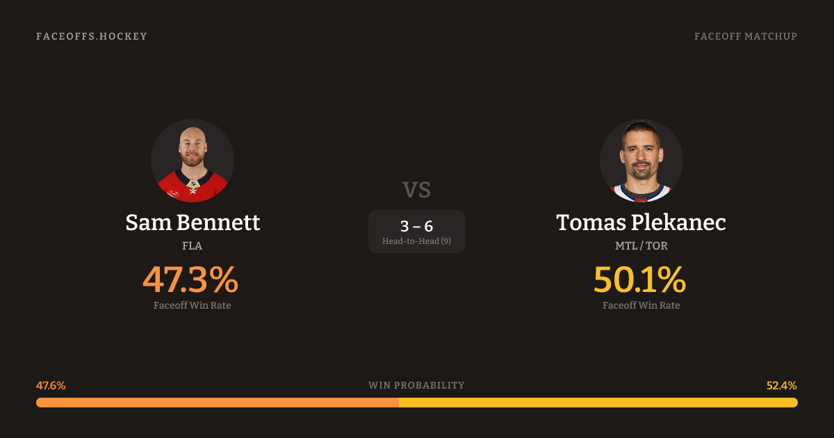 Sam Bennett vs Tomas Plekanec — Faceoff Head-to-Head
