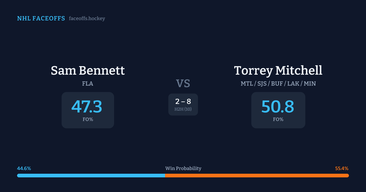 Sam Bennett vs Torrey Mitchell — Faceoff Head-to-Head