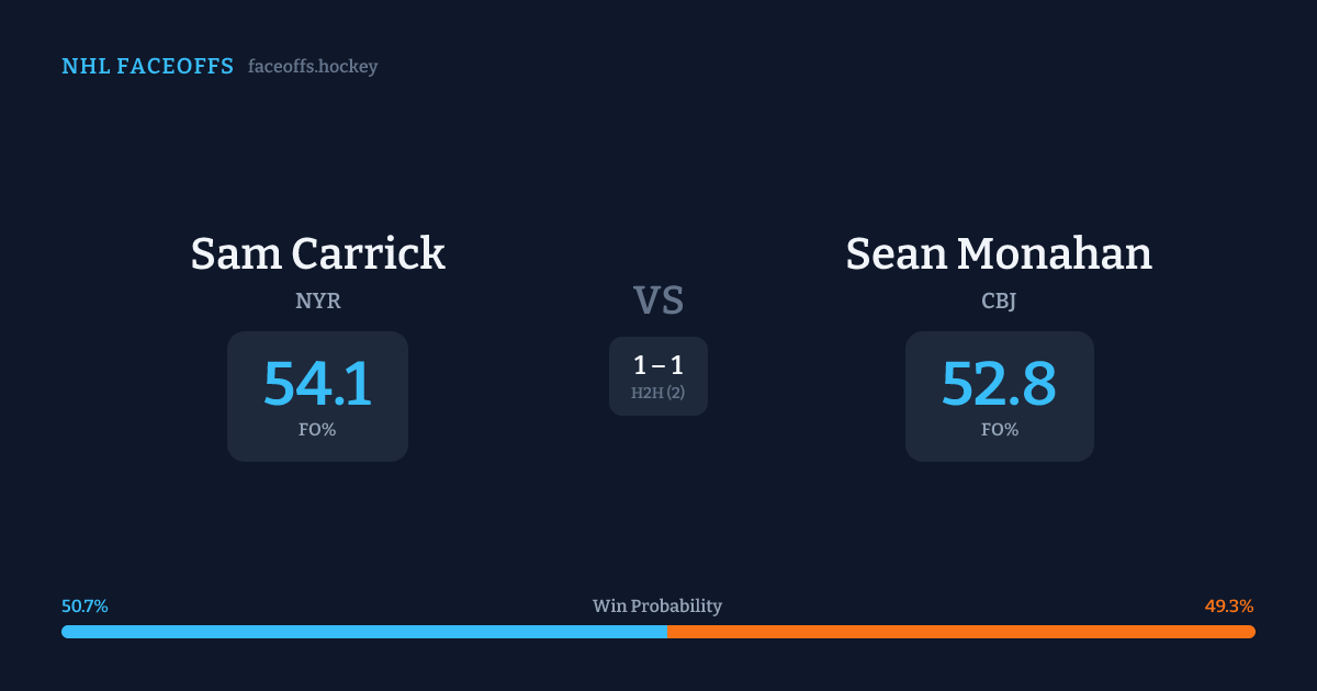 Sam Carrick vs Sean Monahan — Faceoff Head-to-Head
