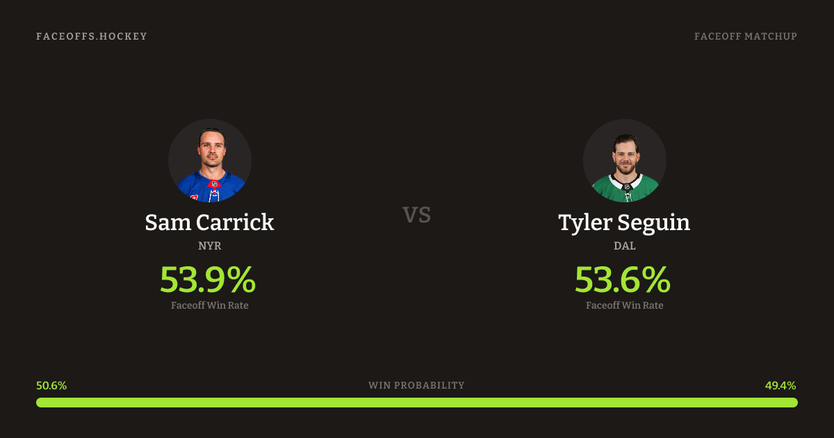 Sam Carrick vs Tyler Seguin — Faceoff Head-to-Head