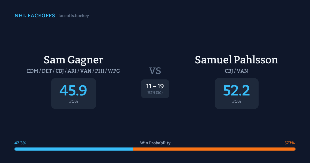 Sam Gagner vs Samuel Pahlsson — Faceoff Head-to-Head