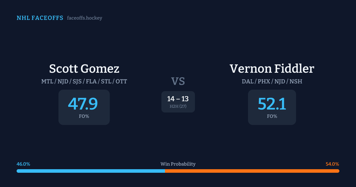 Scott Gomez vs Vernon Fiddler — Faceoff Head-to-Head