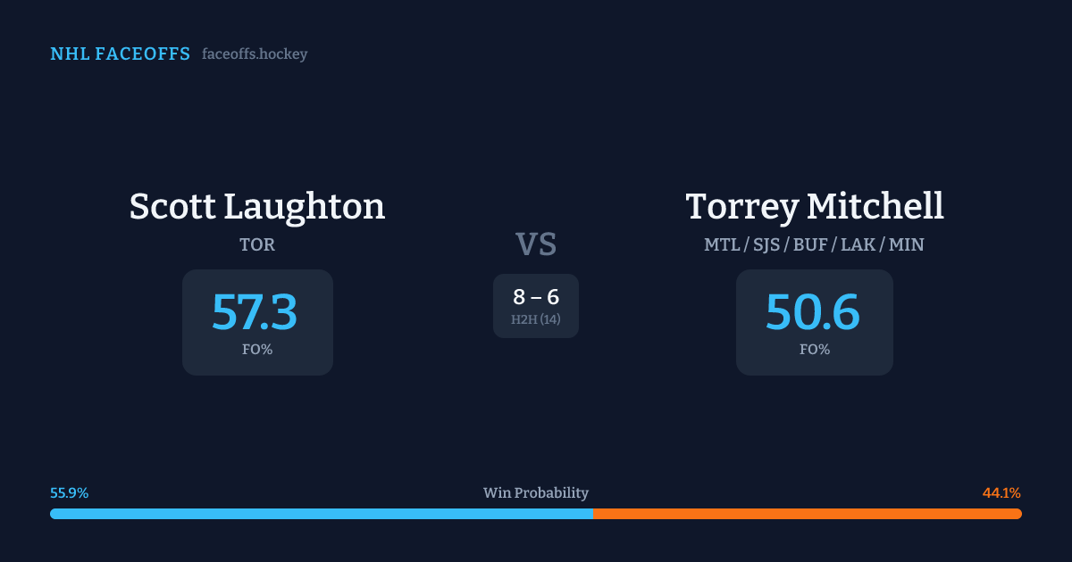 Scott Laughton vs Torrey Mitchell — Faceoff Head-to-Head