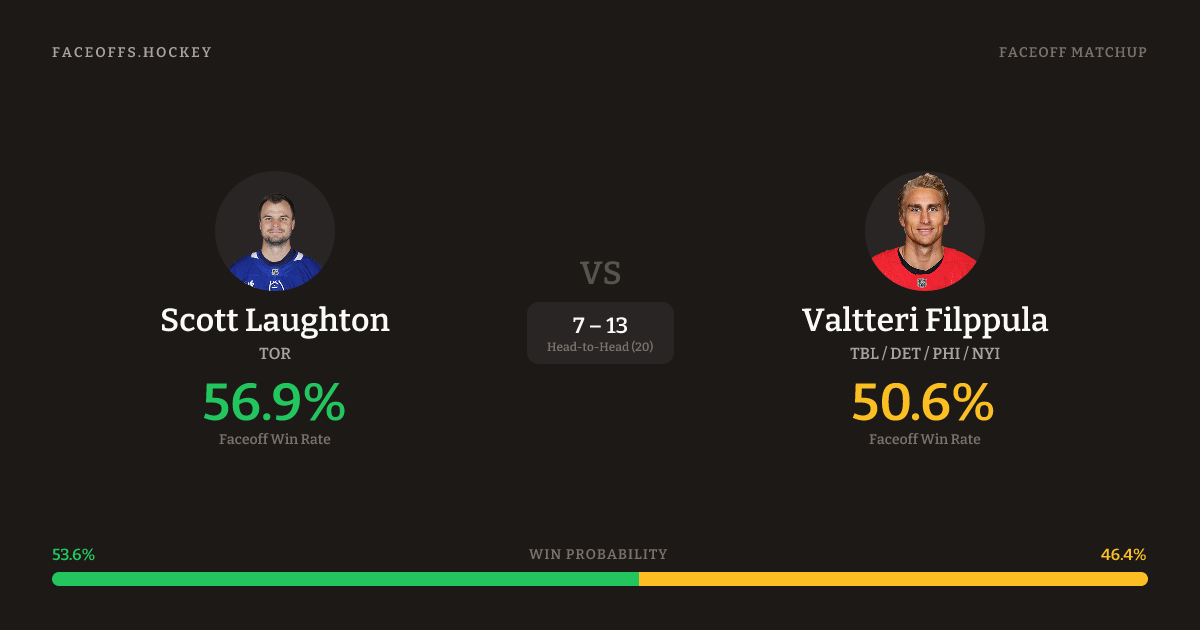 Scott Laughton vs Valtteri Filppula — Faceoff Head-to-Head