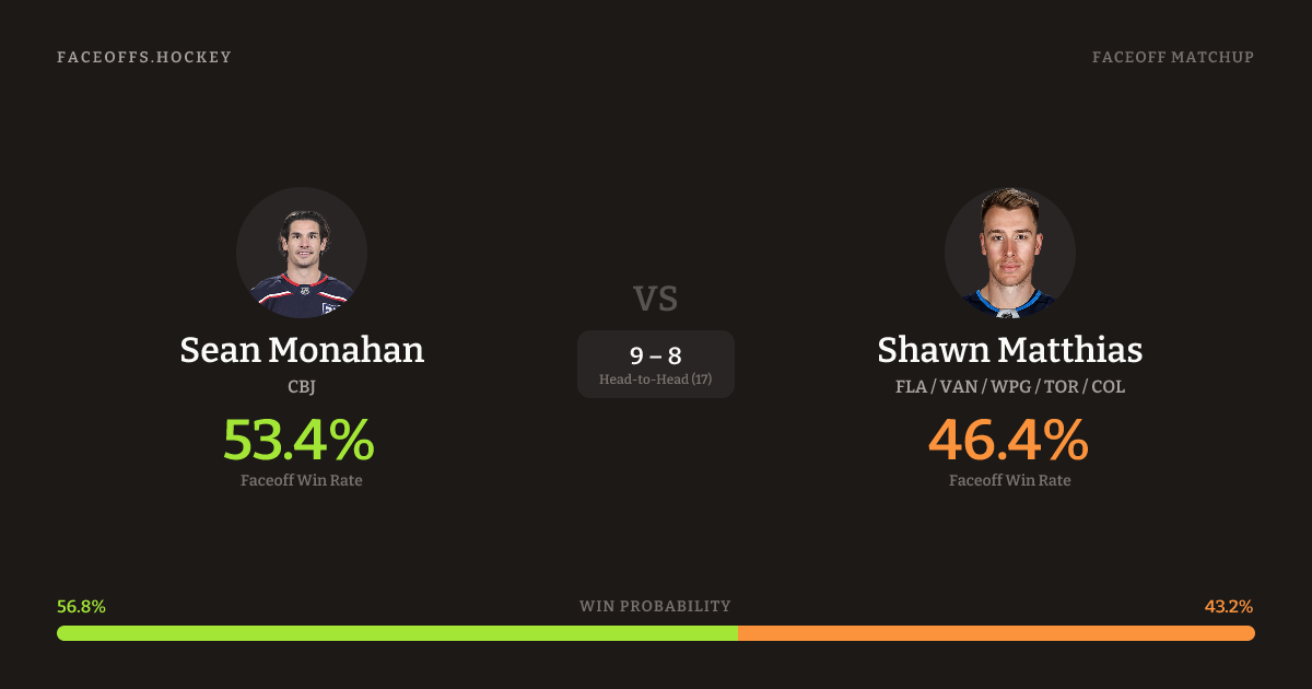 Sean Monahan vs Shawn Matthias — Faceoff Head-to-Head