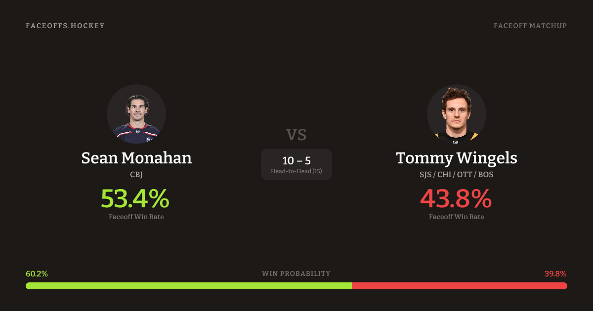 Sean Monahan vs Tommy Wingels — Faceoff Head-to-Head