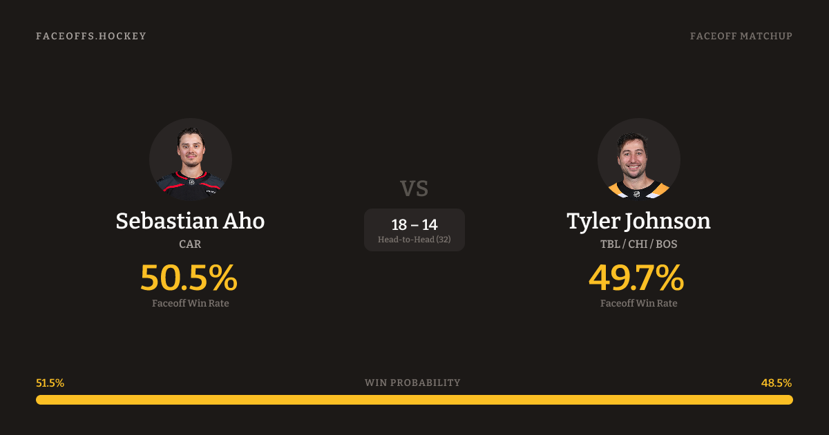 Sebastian Aho vs Tyler Johnson — Faceoff Head-to-Head