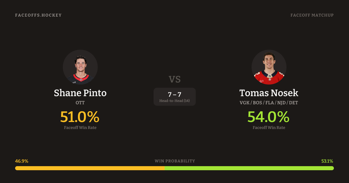 Shane Pinto vs Tomas Nosek — Faceoff Head-to-Head