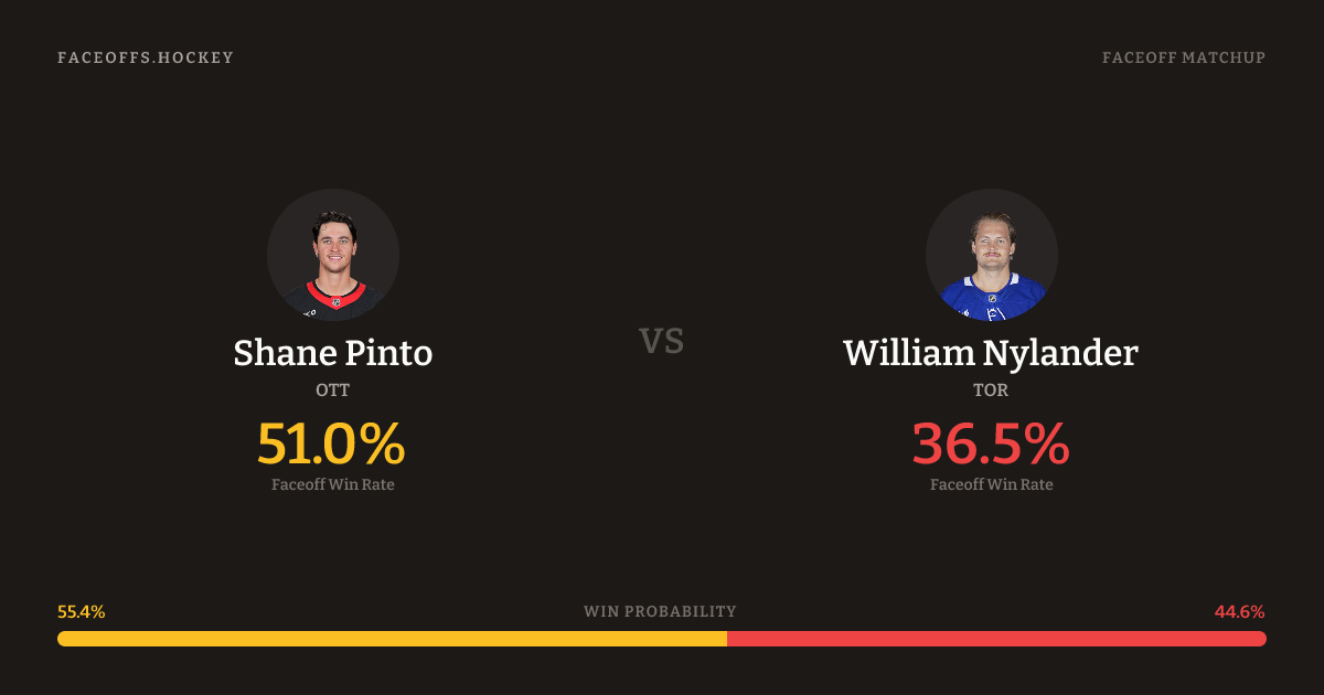 Shane Pinto vs William Nylander — Faceoff Head-to-Head